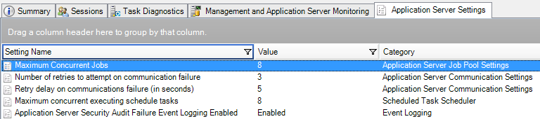 This tab displays the Patch Manager server settings that are specific to the Application Server role.