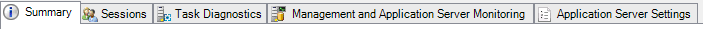 When you select Applications Server node in the drop-down menu, the console displays the following tabs with information about that server in the lower-center pane.