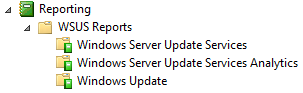 The WSUS server inventory task uses the WSUS API to access data on your upstream and downstream WSUS servers and populate the WSUS reports located at Administration and Reporting > Reporting > WSUS Reports.