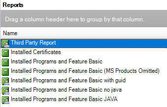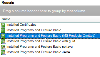 In the center console under Reports, select Installed Programs and Features Basic (MS Products Omitted). Th