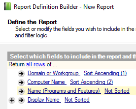 In the Report Definition Builder, define the report fields.