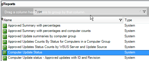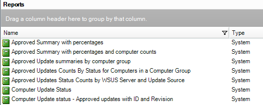 For example: Administration and Reporting > Reporting > WSUS Reports > Windows Server Update Services Analytics.