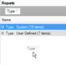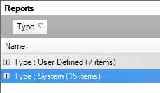 The Type column categories (for example, System and User Defined) are grouped together in separate drop-down views.