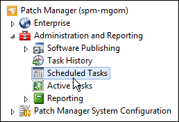 To access the node, log in to Patch Manager as an administrator. In the navigation node, expand Administration and Reporting and select Scheduled Tasks.