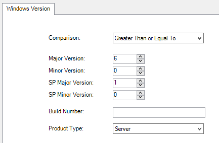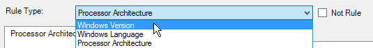 Complete the Windows Version tab options.   - Click the Rule Type drop-down menu and select Windows Version.