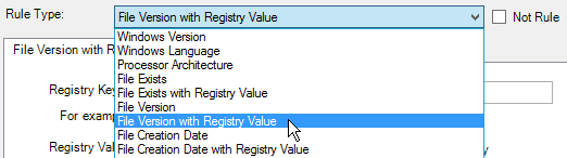 Click the Rule Type drop-down menu and select File Version with Registry Value.