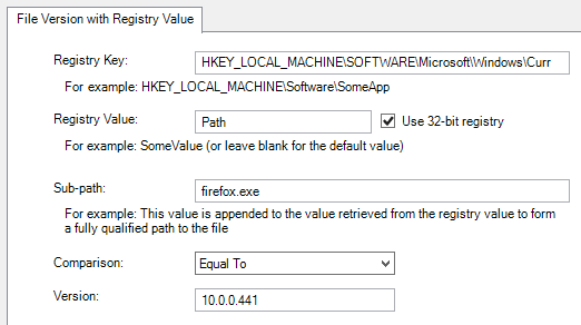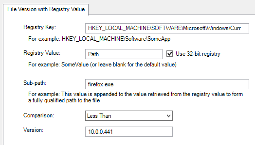 In the Registry Key field, enter: HKEY_LOCAL_MACHINE\SOFTWARE\Microsoft\Windows\CurrentVersion\App Paths\firefox.exe
