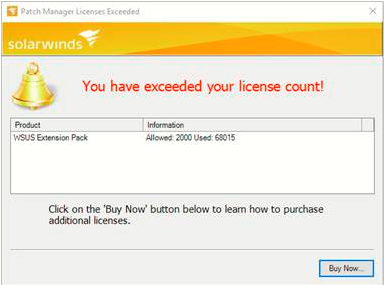 Your product license determines the number of computers you can manage in your deployment. If you launch Patch Manager and you have exceeded your license count based on your license tier, the following error message displays in the console.