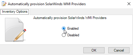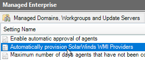 Under Setting Name, double-click Automatically provision SolarWinds WMI Providers.