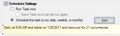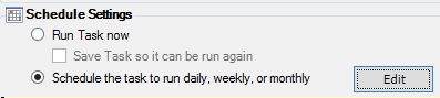 Select Schedule the task to run daily, weekly, or monthly, and then click Edit.