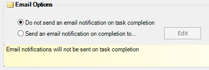 - In the Email Options box , select Send an email notification on completion to, and click Edit.