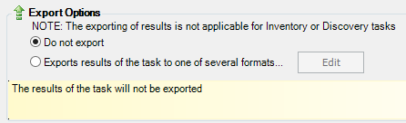 - In the Export Options box, select Export results of the task to one of several formats and click Edit.