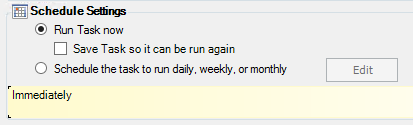 Select Run Task Now to run the task immediately. To run the task at a scheduled time: