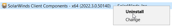 Right-click SolarWinds Client Components - x64 and select Uninstall.