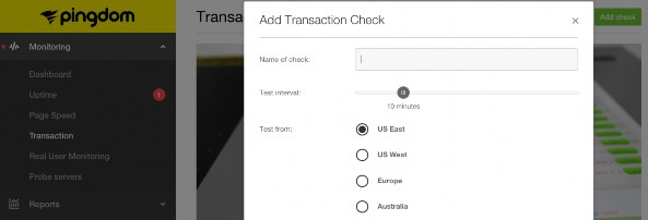 Select the test region you would like to perform the transaction monitor from. There are 4 available regions: US East, US West, Europe and Australia.