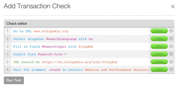 Transaction monitoring provides a way to automatically test these site interaction synthetically so that these steps keep on working, by reproducing them at set intervals. If something fails in the transaction, you can receive an alert.