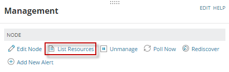 - From the Management widget, click List Resources.