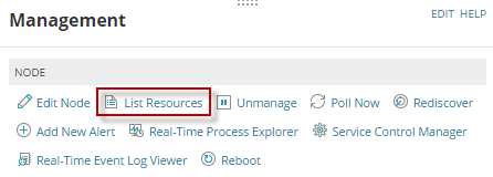 - On the Node Details page, click List Resources in the Management widget.