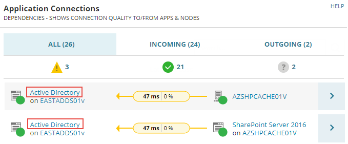 - To confirm the node was added:- Click My Dashboards > Applications > Active Directory.