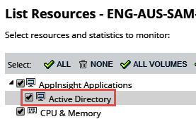 On the Choose Resources tab, select AppInsight Applications > Active Directory.