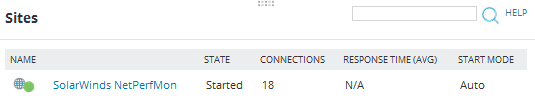 The Sites widget lists the sites (both front and backend) for the IIS server. Click a site to view more details such as response time, connections, and requests.