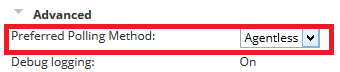 For Kerberos authentication on Linux-based systems, select Agentless as the Preferred Polling Method.