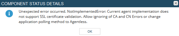 - In Python 2.7.5 or earlier, the Linux implementation does not support checking of Certificate Authority (CA) and Common Name (CN) errors for the SSL connection. If you configure the component monitor to recognize CA or CN errors but the installed version of Python does not allow checking, polling fails and a message prompts you to either update the CA or CN settings, or switch to agent-less polling.