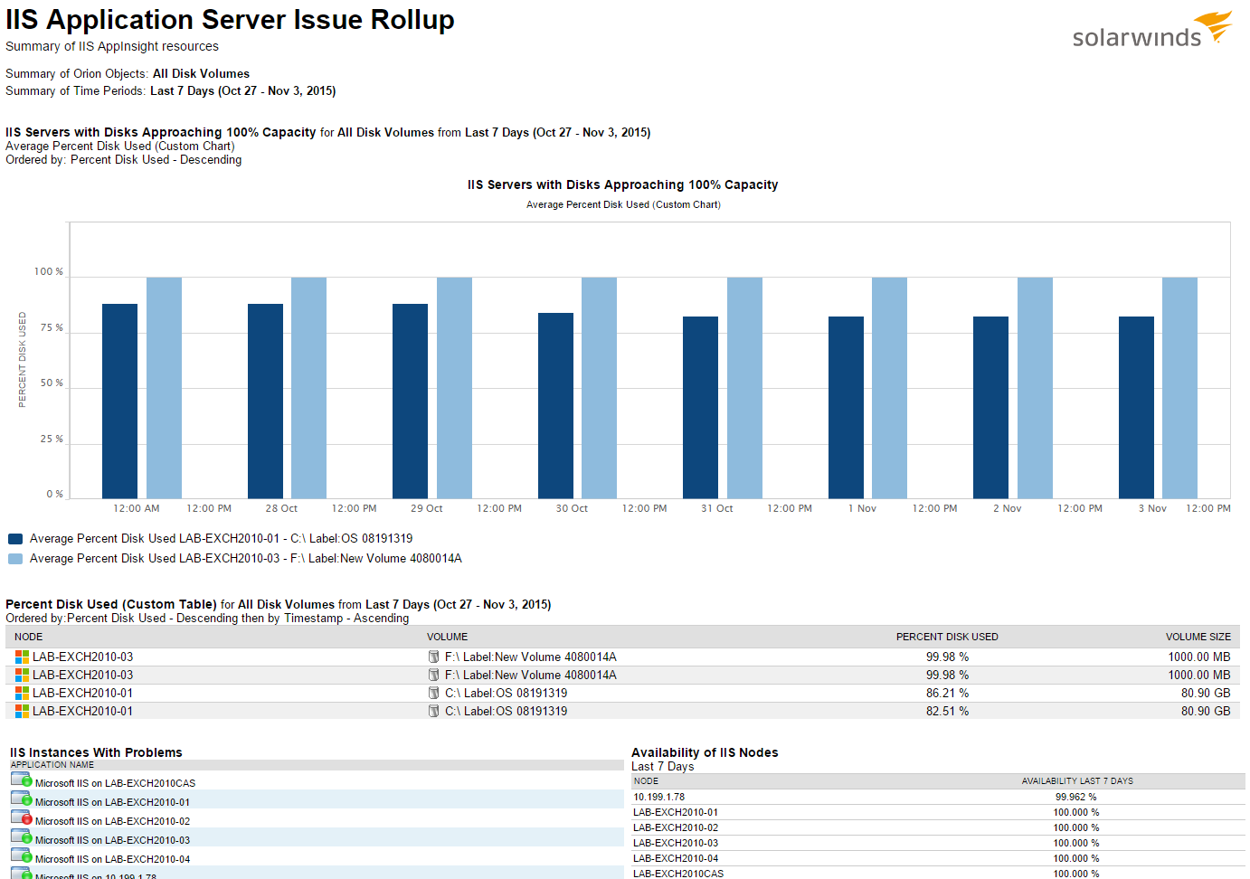 You can combine any SolarWinds Platform Web Console widget or chart into a report. In this example, a custom report for IIS servers is created by modifying a predefined report, then adding a few more widgets for a complete picture of your IIS servers. To create this custom report, you will first need to create a custom property to identify nodes running IIS.
