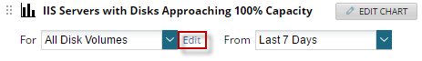 - For the widget in the first default row, click Edit Chart, rename the chart to IIS Servers with Disks Approaching 100% Capacity, and click Submit.