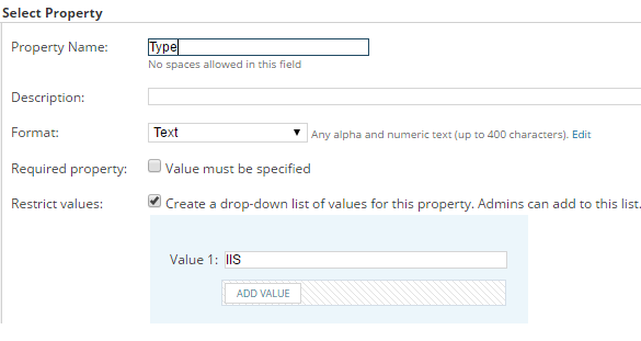 Select Restrict values, and in the Value 1 field, enter IIS.
