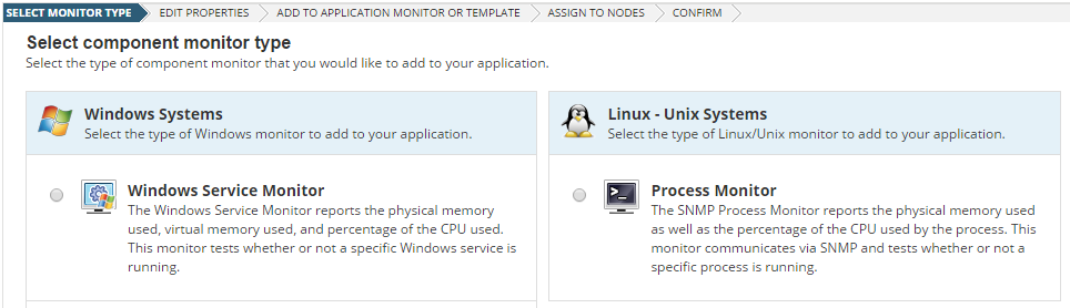 - Manually Add Component Monitors allows you to select and add multiple types of component monitors to the template