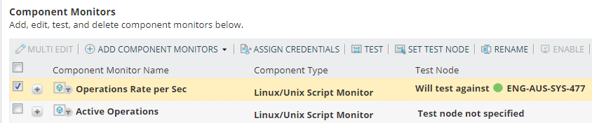 When configuring script component monitors in SAM, test scripts before you verify credentials and access. When the test ends, SAM registers each returned metric as a numbered output in the SolarWinds Platform database. Until they're tested, scripts and component monitors return an initial Unknown status. After testing, polling returns accurate application status.