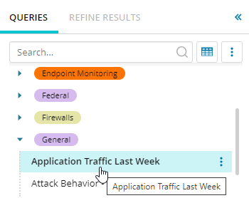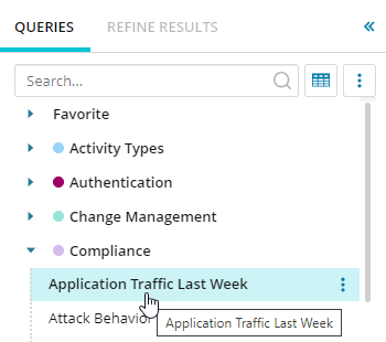 | Application Traffic | RPT2003-06-11-5.rpt | Lists all application traffic events. | Activity Types → Network (tag) Compliance → General (tag) |