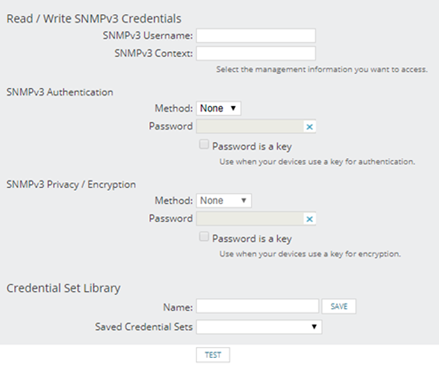 This is a SEM-specific setting for SNMPv3. Completing the Username and Context fields, for example, will cause the connection test to fail.