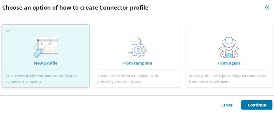 - On the Connector Profile toolbar, click Create Connector Profile, select New profile, and then click Continue.