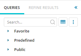The following table describes the Queries tab categories. See Create a search query for details about creating queries.