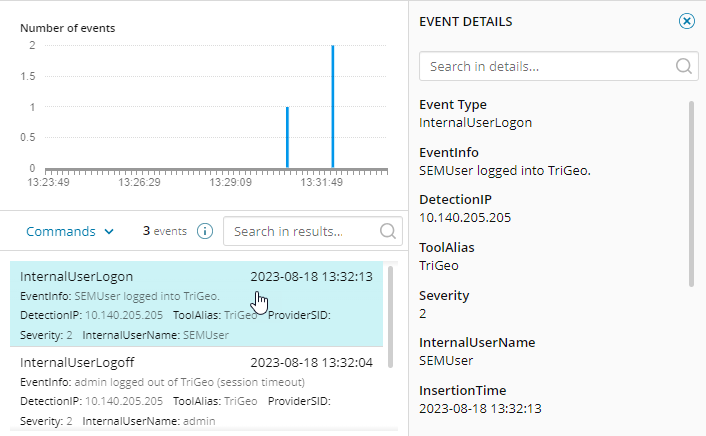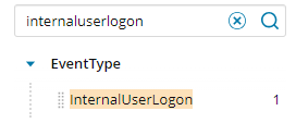 The toolbar also displays the maximum number of events that meet your query, and allows you to search the event results for a specific event.