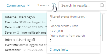Because some search parameters can result in several matching results and negatively impact SEM performance, SEM limits the number of events that are retrieved. See Event Limits for more information.