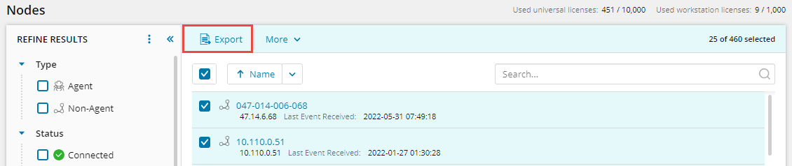 A CSV file containing the details about your selected node(s) is saved to your system.