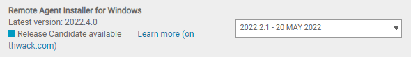 If you are installing the agent(s) remotely, locate the Remote Agent Installer for Windows. Click the product version drop-down menu, select the targeted SEM version for your Windows operating system, and then click Download.