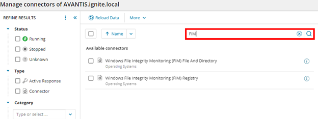 In the search box, type FIM and then click the magnifying glass icon to locate an available FIM connector.