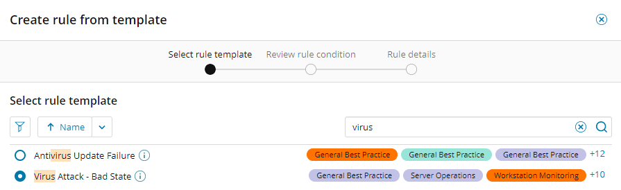 Select the Virus Attack - Bad State rule template, and then click Next.