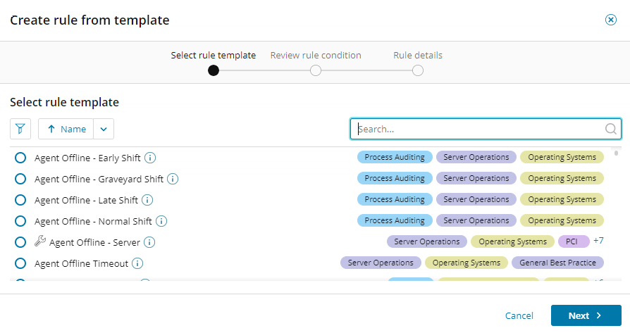 - Select the Critical Account Logon Failures rule template, and then click Next.
