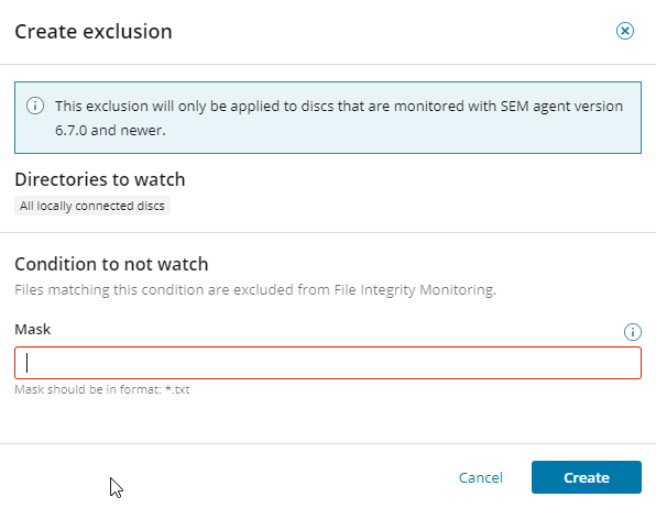 For example, if there is directory named DirectoryContent with files content1.txt and content2.txt in it, modifications to the directory itself will not be monitored (for example, a permissions change), but changes to the files in that directory will be monitored. You cannot exclude files in specific folders from being monitored, other than set up inclusions to not watch the folder at all.