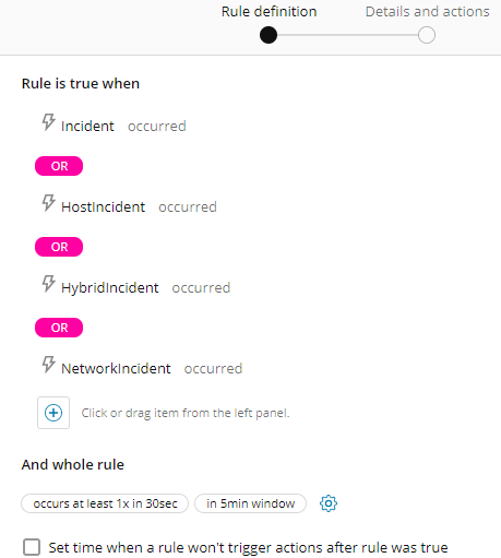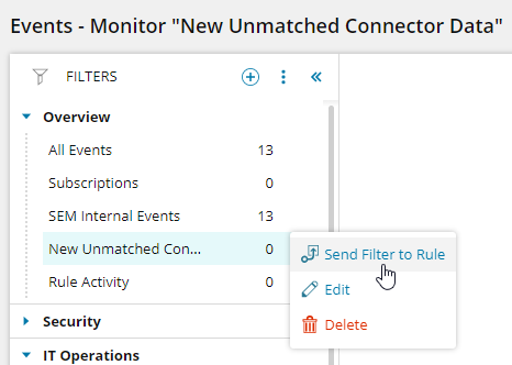 From the Filters pane, you can create a new rule based on any existing filter with a single click. This allows you to set alerts for specific event activity without manually duplicating filter values in the custom rule builder.