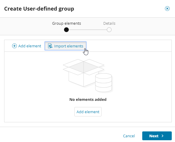 If you have group elements saved to a Comma Separated Values (CSV) file, you can import those elements into your user-defined group.