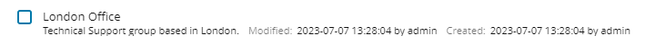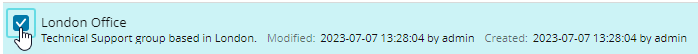The Last modified option filters all groups that were last modified within a specific timeframe. The default selection allows you to list all groups that were modified in the last hour. To select another timeframe, click the last modified link and select a new timeframe.