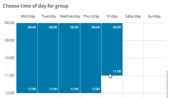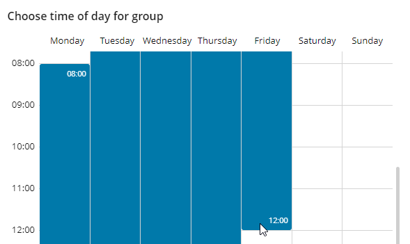 Drag the mouse arrow to the day and hour when this timeslot ends (for example, Friday at 12:00), and then release the mouse button.