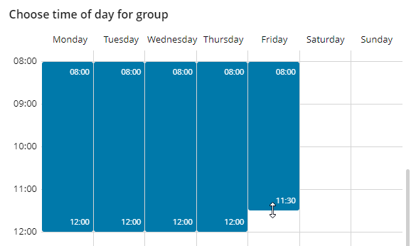 To change the timeslot for each day, drag the top or bottom timeslot edge to a new hour.