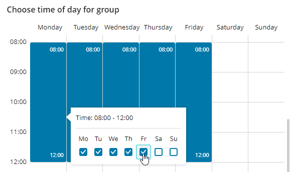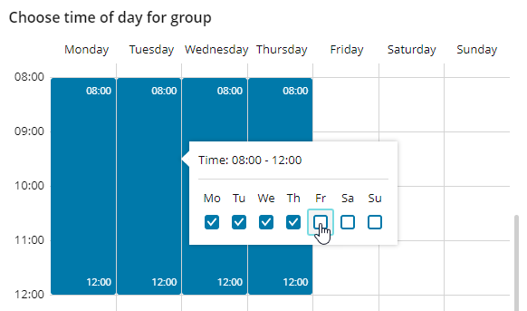 In the pop-up menu, clone the selected timeslot to additional week days that apply to this group.